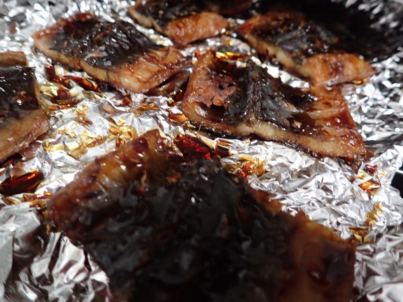 いろいろ調べてみた結果、付いてるタレを洗い流しお酒を振って5分。アルミホイルにのっけて魚焼きグリルで焼いてたれをかけるというお手軽な方法を採用。