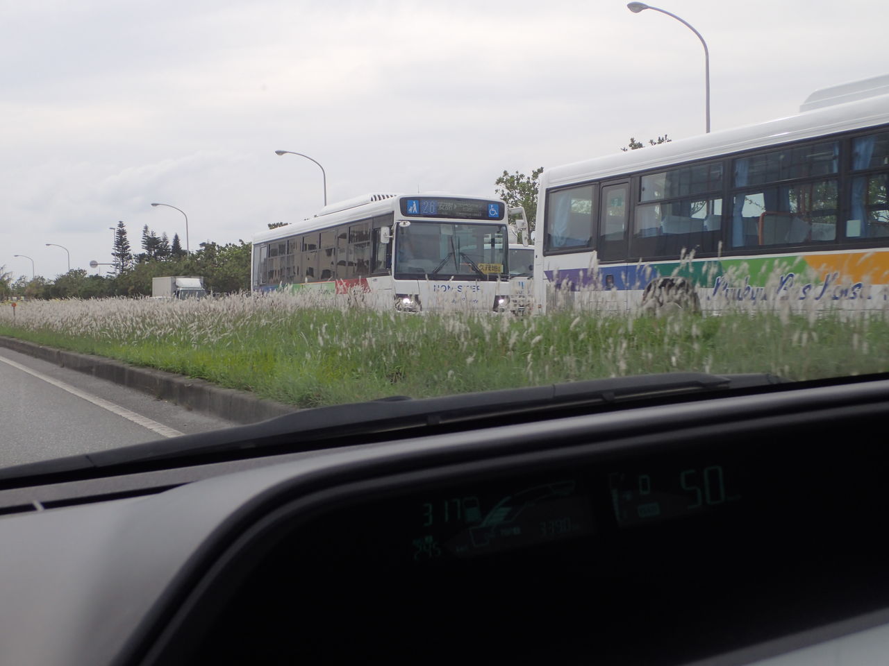 そして穂に覆われていた道を通りかかると、中央分離帯を覆い尽くしていたふさふさが減ってきていました。