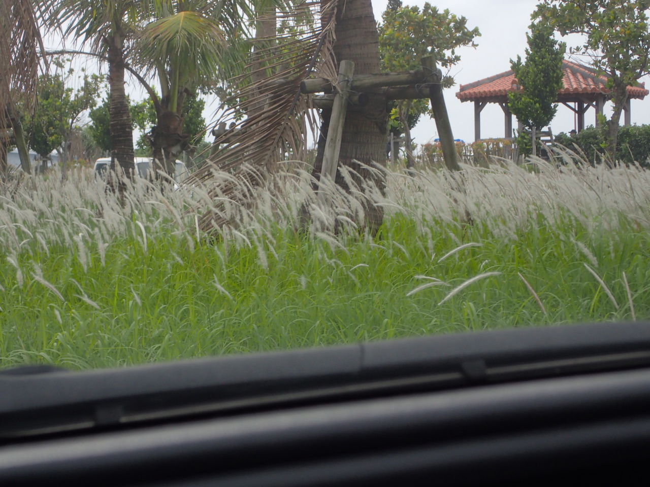 2週間くらい前、時々車で通る海岸通りの中央分離帯一面がススキのような白い穂で一杯になっていてびっくりしました。