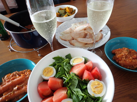 この日の為にYが用意していてくれたスパークリングワインでお祝い![]()