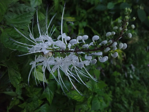 シソ科の植物で、見た通り、この白く伸びた雄しべ、雌しべが猫の髭に似ていることからの命名です。