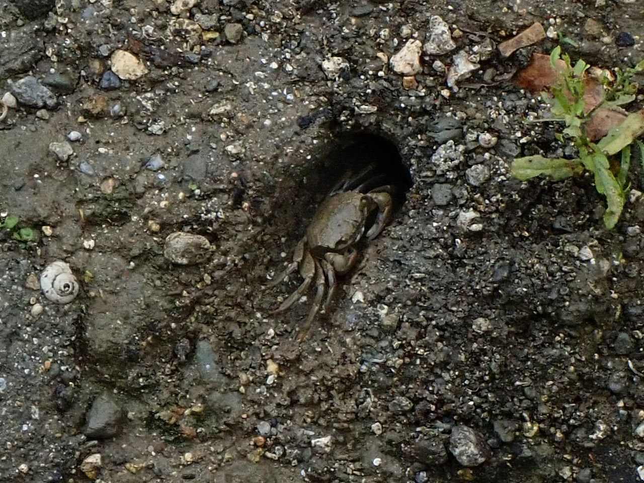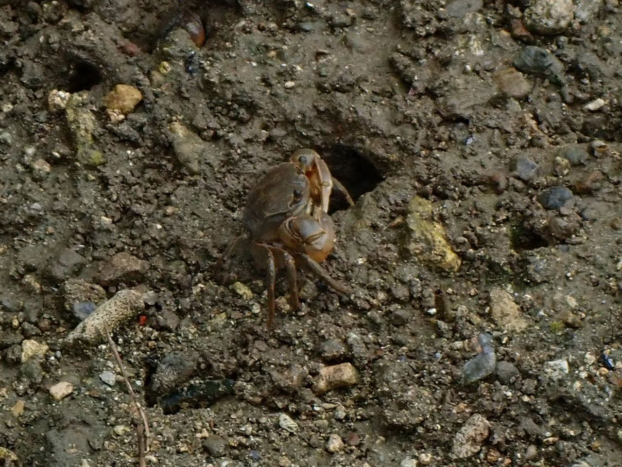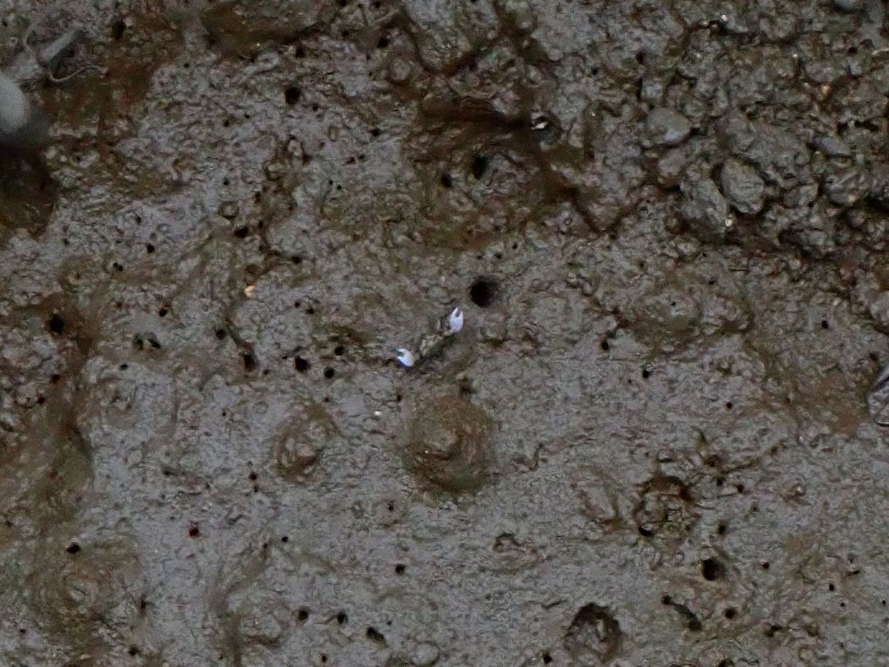 最後はツノメチゴガニです。とても小さくて1㎝もない位でしょうか。一定のリズムで鋏を振り上げるんですが、振り上げた鋏の先が白いので、その瞬間はとても目立ちます。