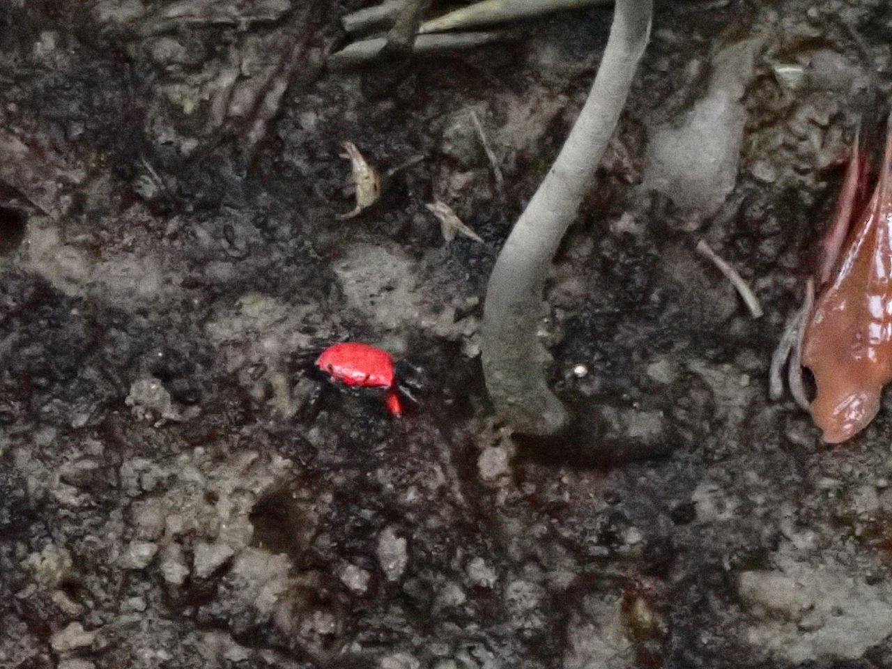 ヤエヤマシオマネキ 左右どちらかの鋏が大きく、下半分が赤です、ある場所にはとても沢山いました。