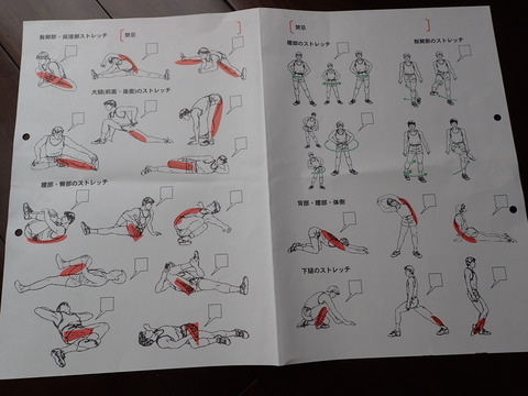 痛いからと動かさないと筋肉がどんどん固くなって動けなくなるらしいのです。体は動かさなきゃダメという事で、ストレッチして身体を伸ばすようにと渡された