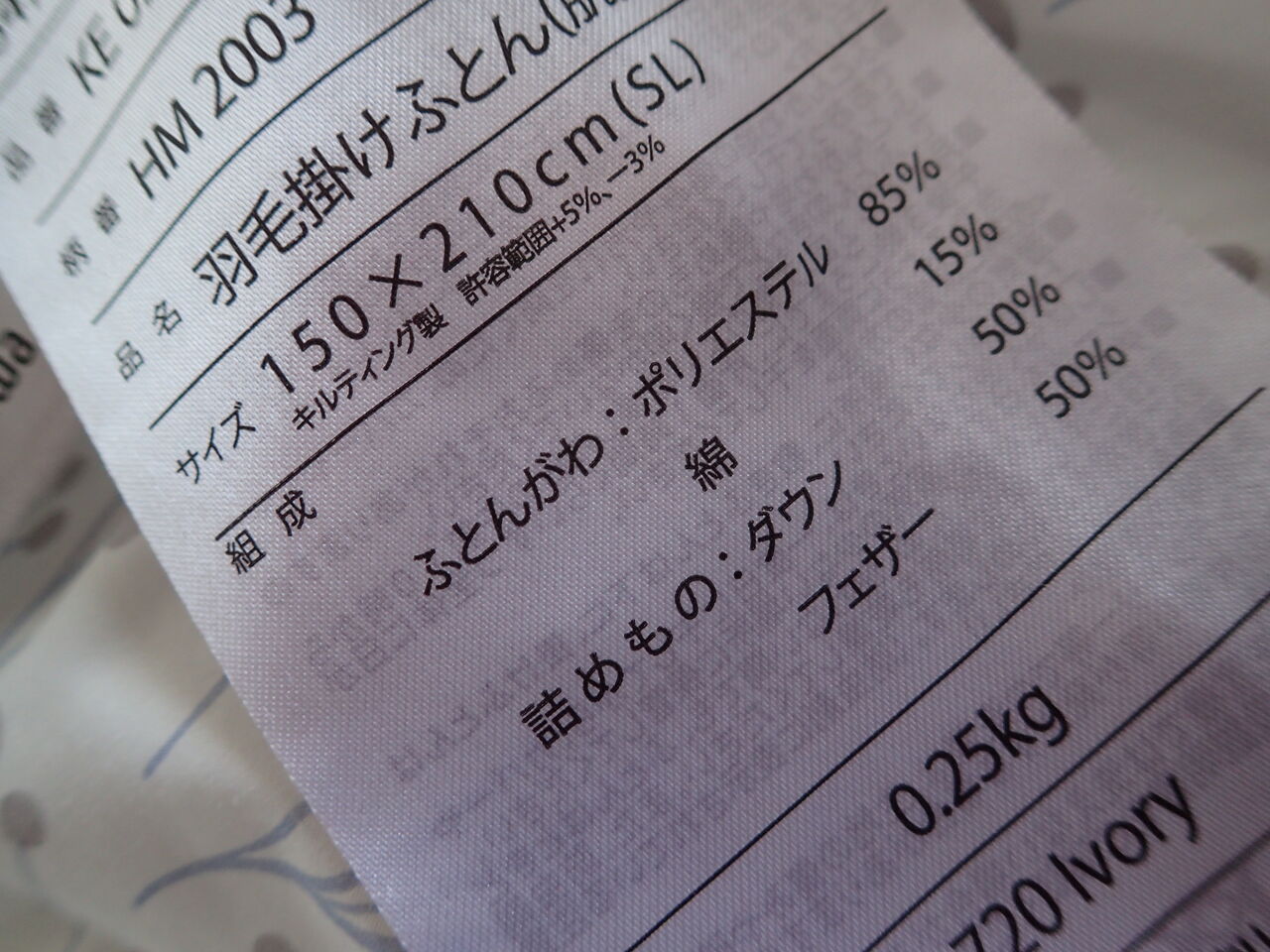 薄手の掛け布団を探したのですが、新春お買い得品コーナーにあった『西川の肌掛け布団(総重量0.25キロ)』しか見当たりません![]()