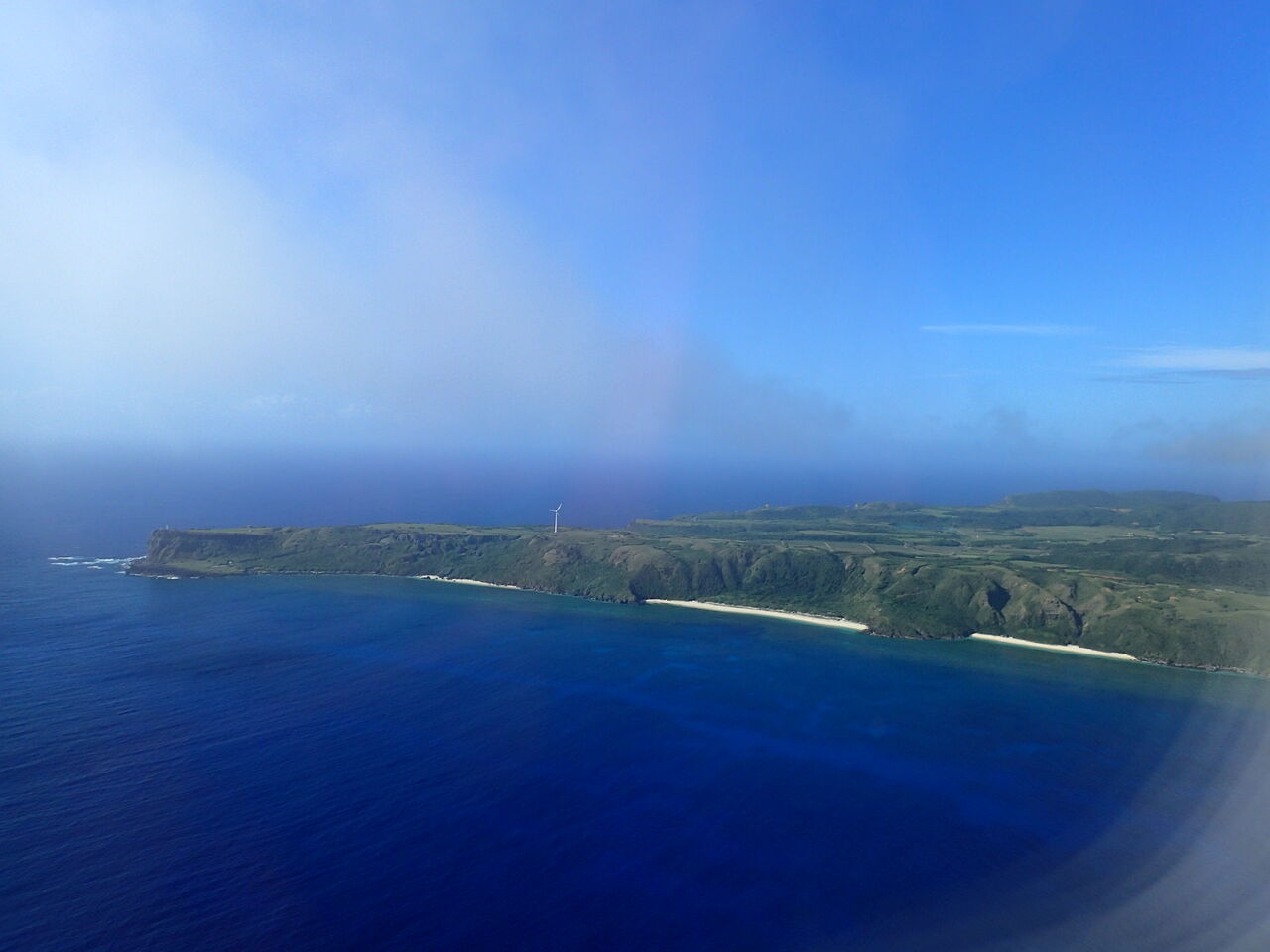 プロペラ機特有の音と振動に揺られること1時間ほどで島影が見えてきました。