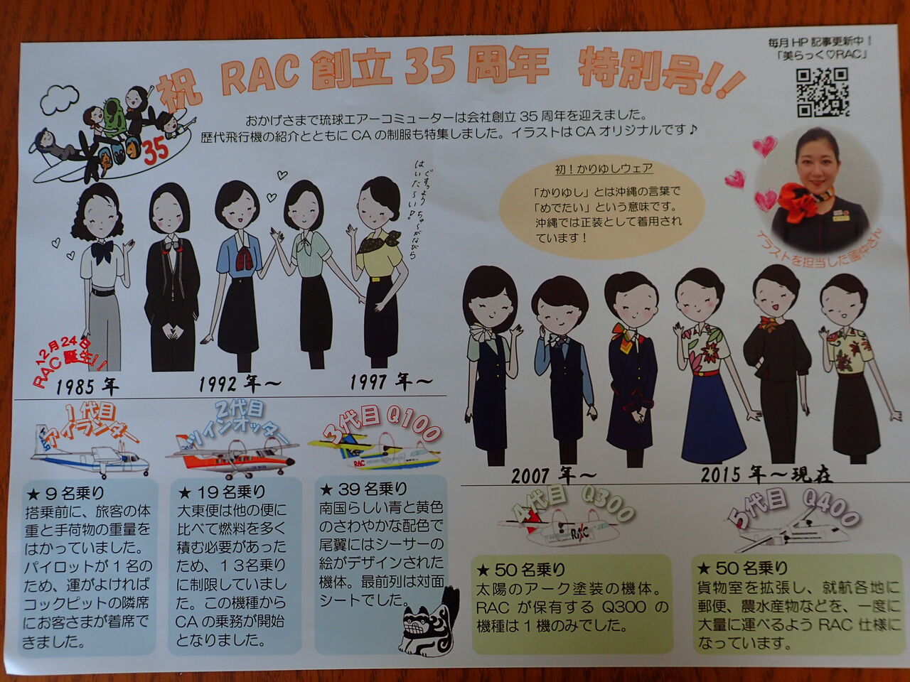 琉球エアコミューターは昨年12月に創立35周年を迎えたとのことで、CAさん手作りのリーフレットを機内で戴きました。