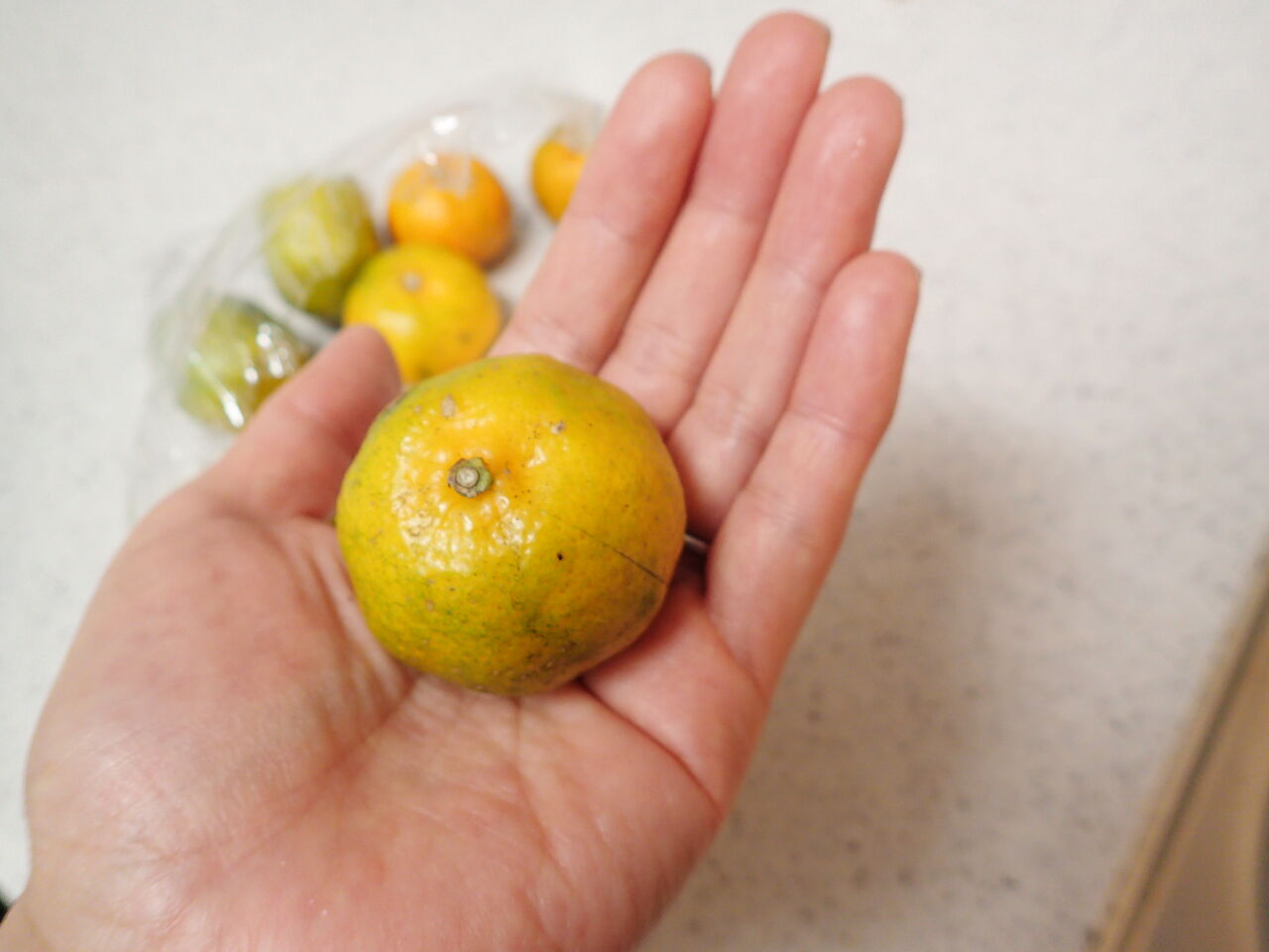 濃い緑色でカボスのように薬味で使う酸っぱいシークヮーサーですが、冬の黄色いシークヮーサーは甘くてそのまま食べられるって