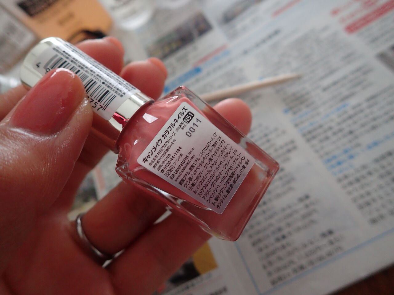 春っぽい桜色のN51番。愛用しているキャンメイクカラフルネイルズはプチプライスなのに発色もよく、特に刷毛の太さやしなり加減がちょうど良くて塗りやすい
