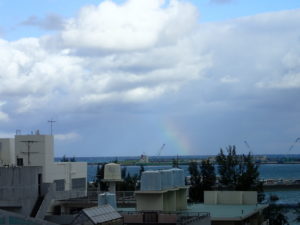 北の海側に虹の端っこがうっすら