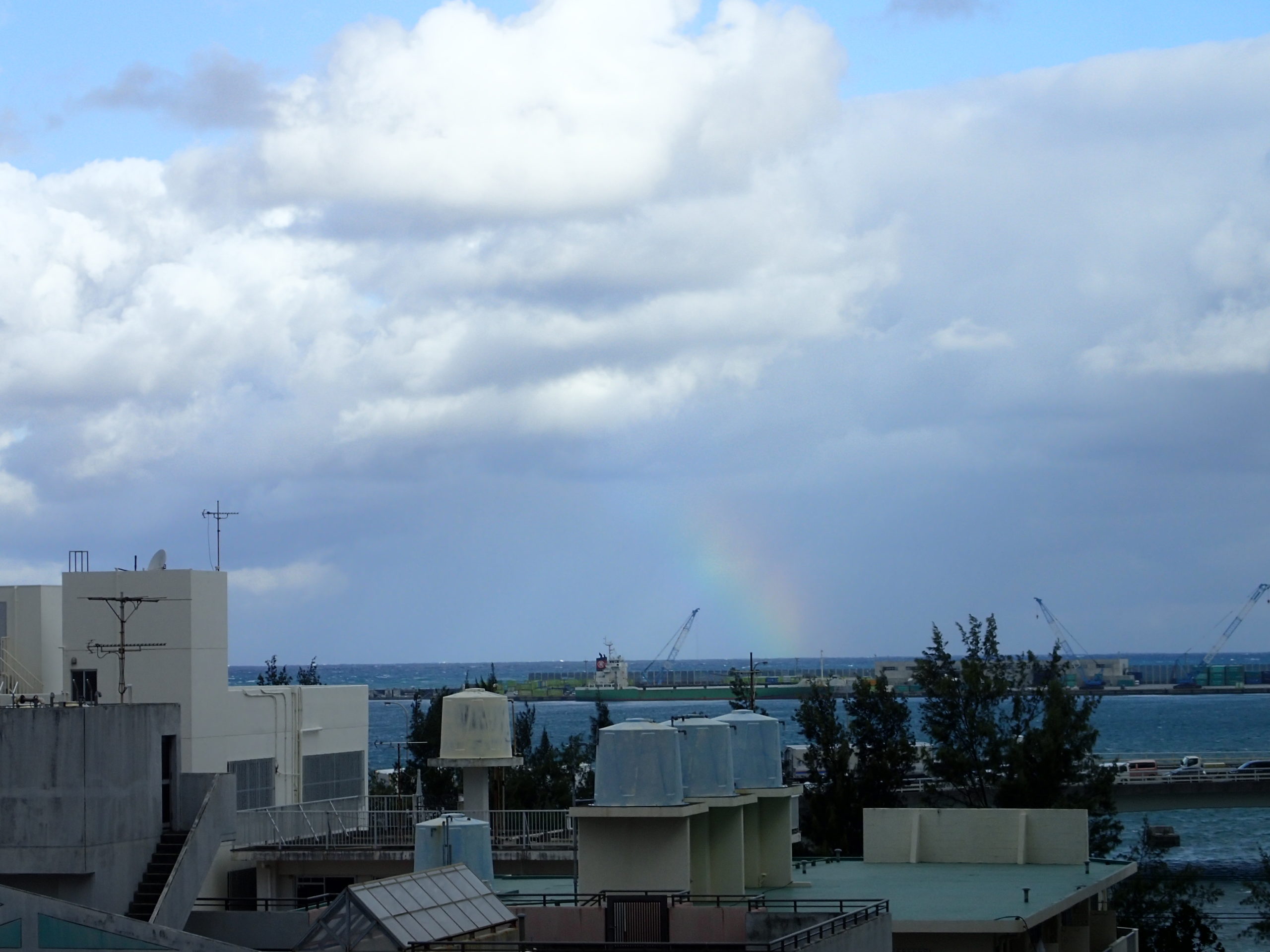 北の海側に虹の端っこがうっすら