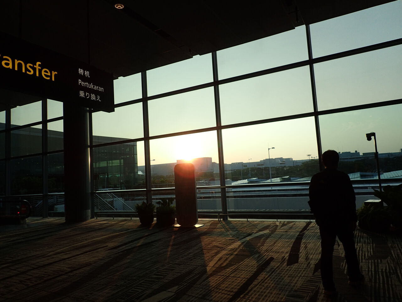 ロビーで朝日を眺めていたら・・・あれっ?