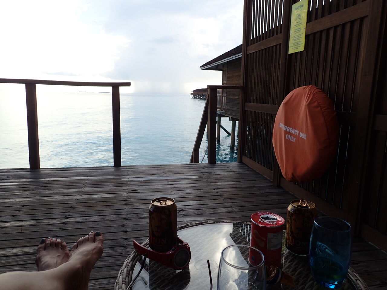 さてさて長い移動時間を経て、やっと念願の水上コテージに案内されます![]()