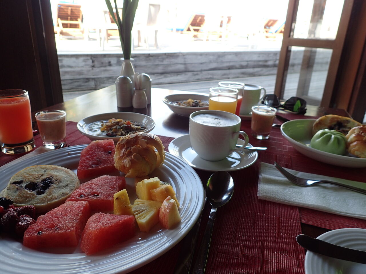 基本島内は素足で歩けるように砂が敷き詰められていました。滞在中ビーサンすら履かないというのは初めての体験でしたよ~![]()