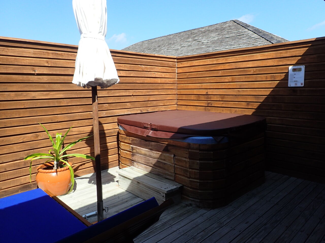 ジャグジー。常時お湯が入っていて最高です~これお風呂好きな日本人にはマストですね![]()