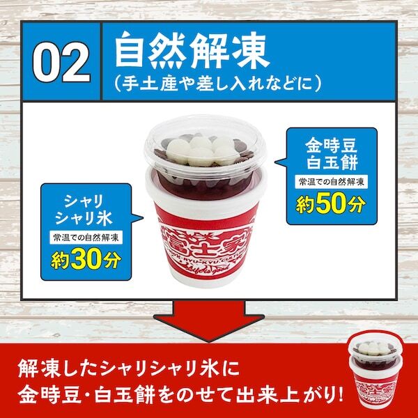 じっくりと煮込んだ金時豆と白玉もちのおいしさ、シャリシャリ氷のやさしい甘味が特長の逸品です。