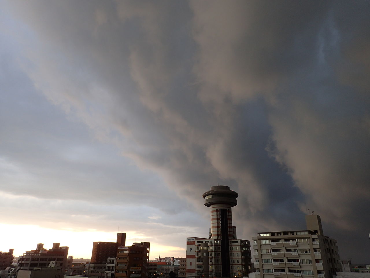 昨日夕方空を見上げると、北の空(右側)から真っ黒な雲が一気に流れ込み
