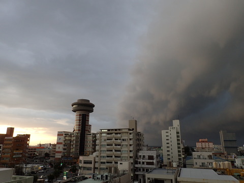 あっという間に上空を覆い、竜巻のような突風が吹き荒れて大粒の雨が久しぶりの沖縄らしい雨空でした。