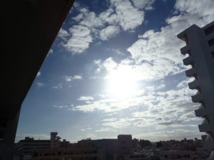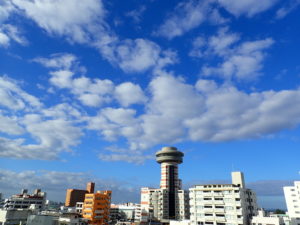 今日の那覇市:晴れ時々曇り/17~22℃/湿度56%/南東の風2~5m