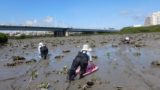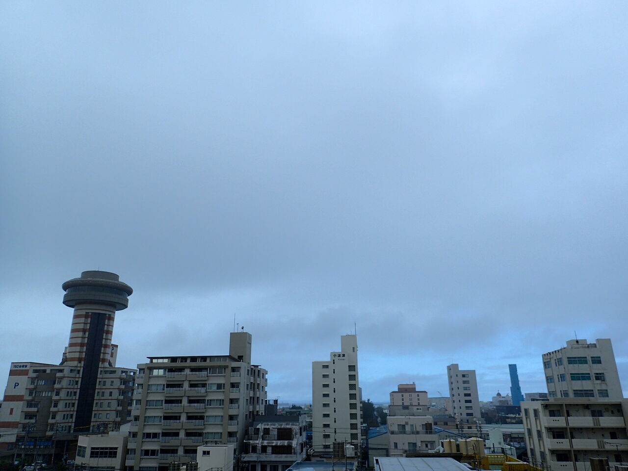 西の方は遠くに青空が見えます。午後からは晴れる予報だけど・・・![]()
