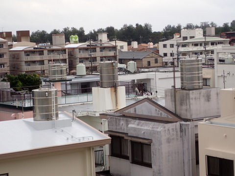 ダムが少なかったり、淡水化のプラントがなかったりしたことが原因で、ちょっと前に建った各家庭には自衛のために、屋上に貯水タンクが整備されていたということのようです。