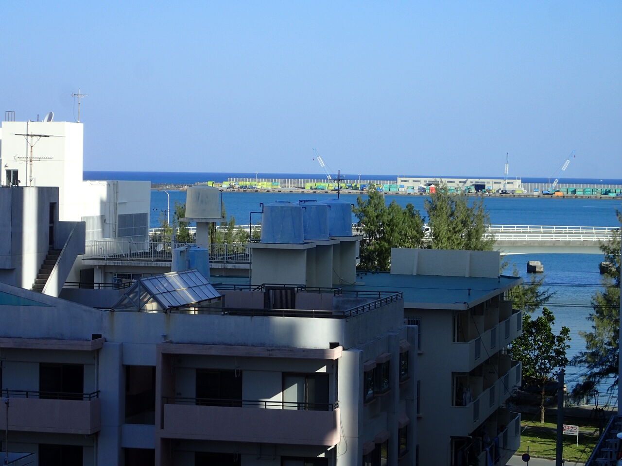 珍しく全く雲がない!!!実はめったにない空模様で、湿度の高い沖縄では晴れていてもどこかしら雲が浮いています。ちょっとした珍事件にテンション上がった朝