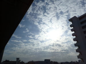 今日の那覇市:晴れ時々曇り/19~23℃/湿度60%/北東の風5~8m