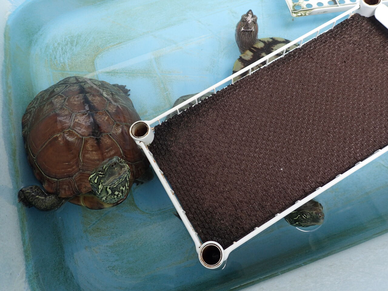 早く水槽に戻ろうよーと言っても頑なに拒否!