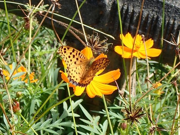 こちらもオレンジの羽に黒の縁取りと白紋が目立ちます。