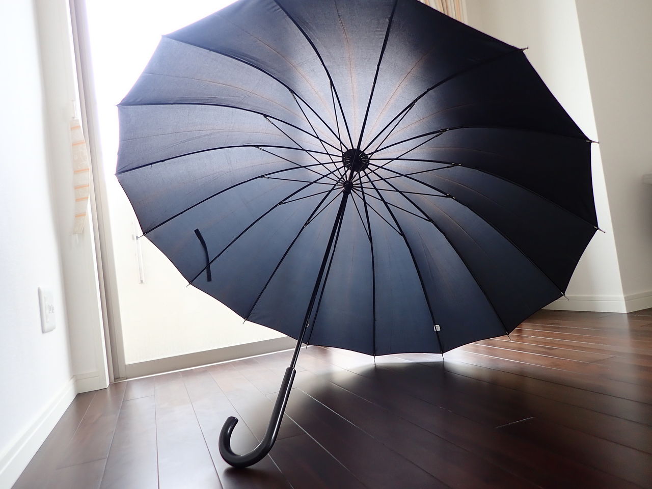 我が家では骨8本の安い普通の傘と折りたたみ傘を何本か常備。唯一、頂き物の骨16本の傘が1本だけあります。