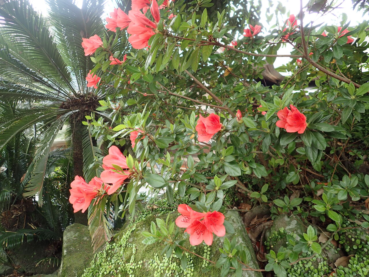 キリシマツツジ(霧島躑躅)はツツジ科の常緑低木で、単純に「キリシマ」とも呼ばれているそうです。鹿児島の霧島山に自生するヤマツツジを改良して生まれたもので、鮮やかな濃赤色から白、ピンク、紅、紅紫と種類も豊富なようです![]()