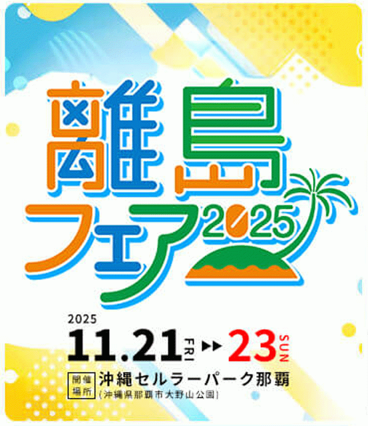県内の18離島市町村から約100店舗が出店予定、離島の特産品が一堂に集まる、県内最大級のイベントです。島バナナや黒糖、泡盛、海産物、工芸品などが勢ぞろいします。