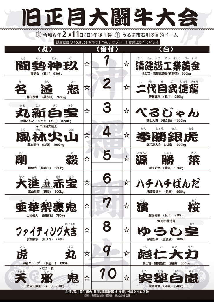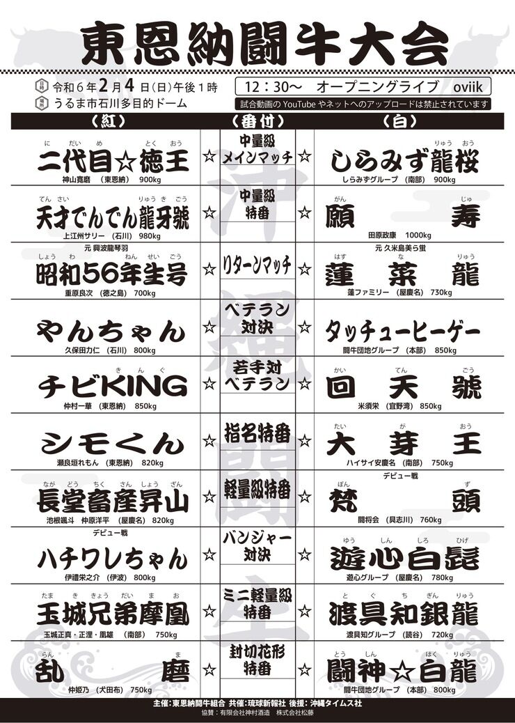 ◆2月4日(日) 東恩納闘牛大会 13時開始