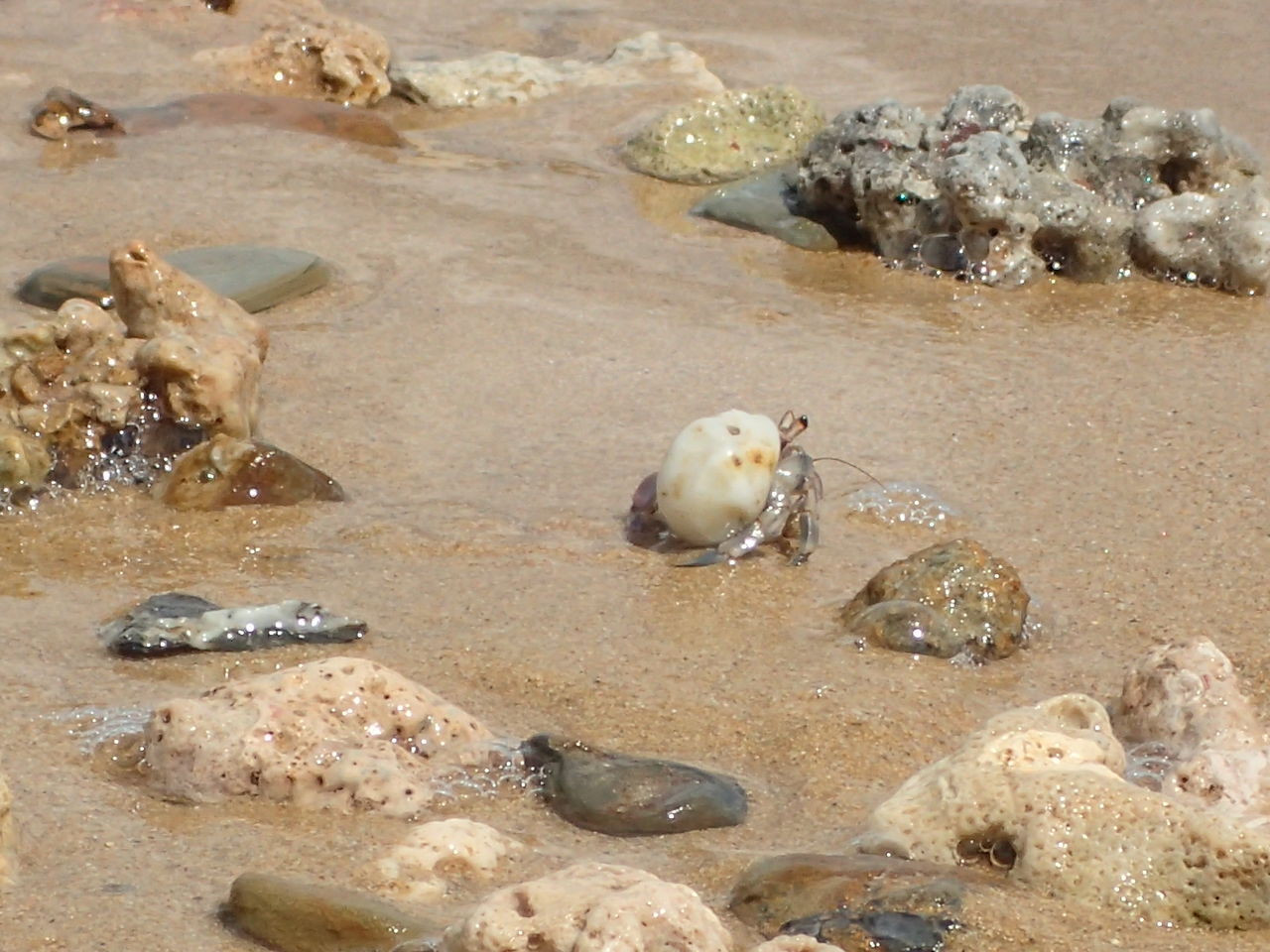 私たちはやどかりさんと戯れたり