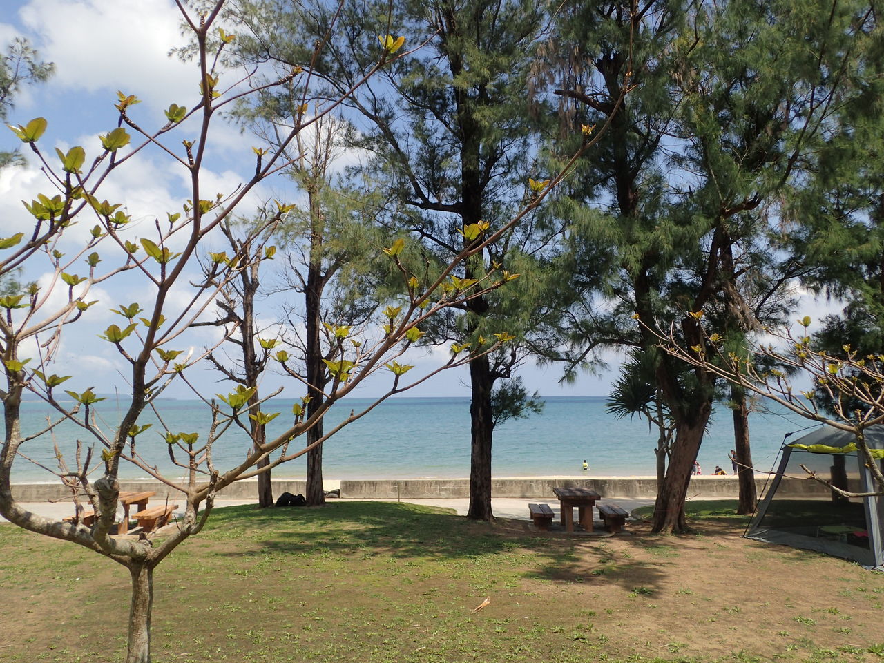 ちなみにシャワーは200円のコイン式のものがありました。ウオータースポーツのメニューが書かれた看板も出ていたので、夏は賑わいそうですね![]()