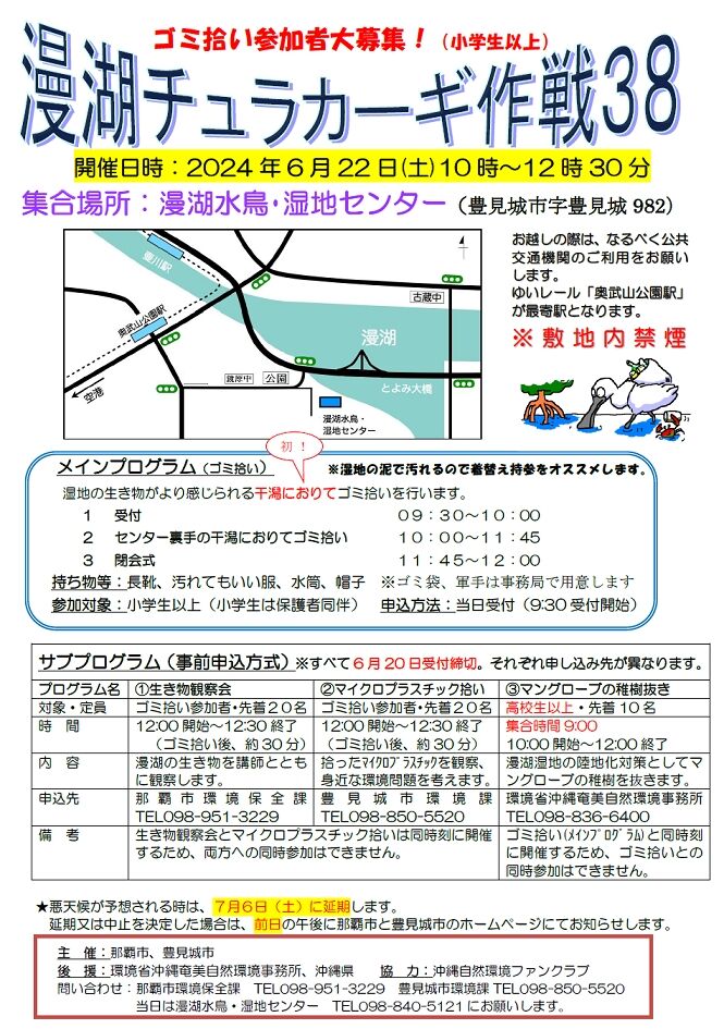 そして本日のメインは「漫湖チュラカーギ作戦」の事前準備でした。