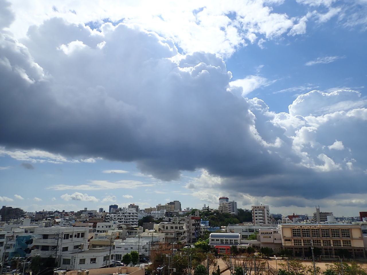 おっきな黒い雲の塊がゆっくりと我が家の上を通過中