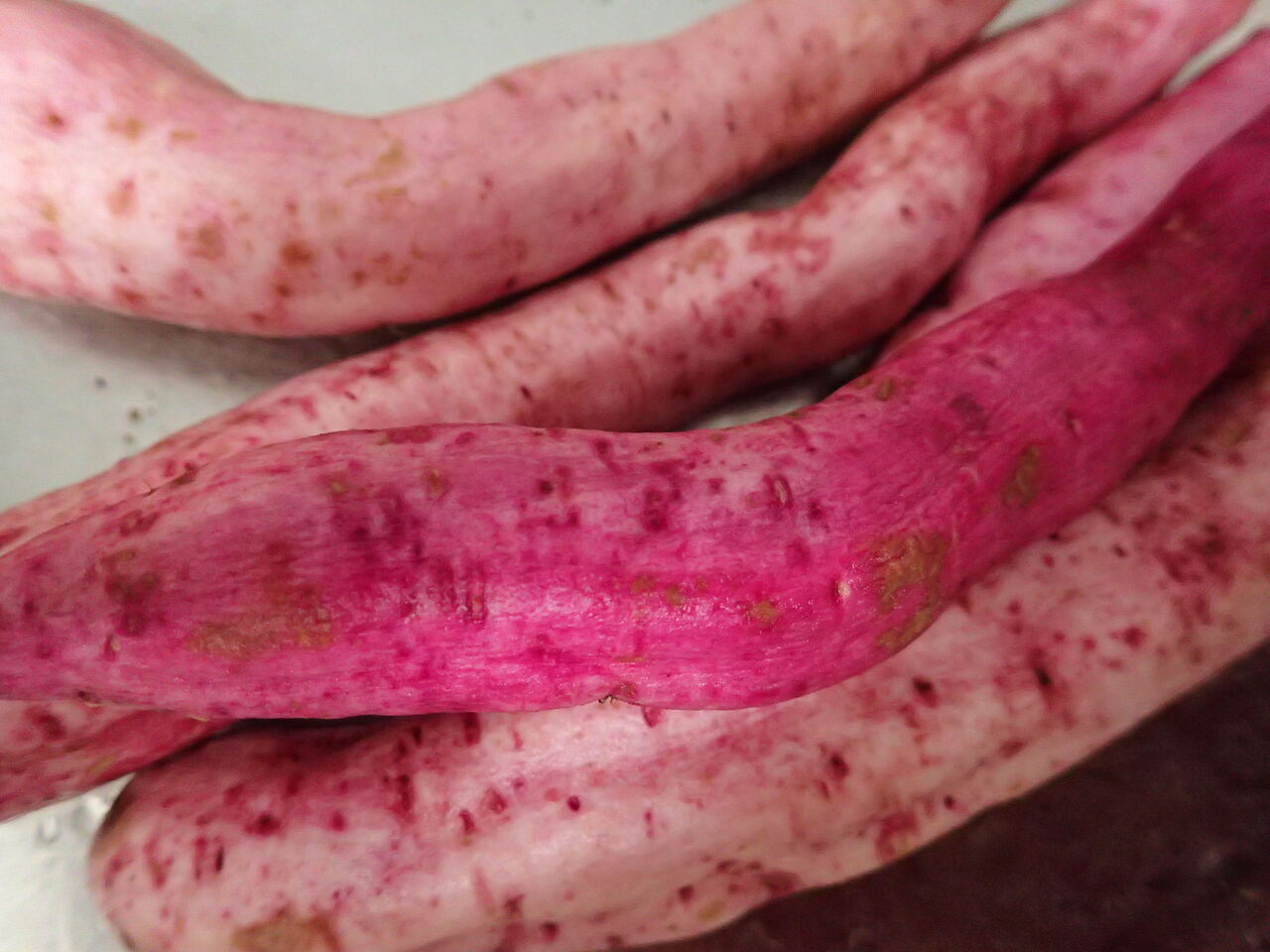 です。Aコープに買い出しに行ったとき農家さん直売野菜コーナーにひと袋だけ紅芋が残ってた。細すぎだからか、たったの180円!特に予定はなかったけどついカゴに入れてしまった。