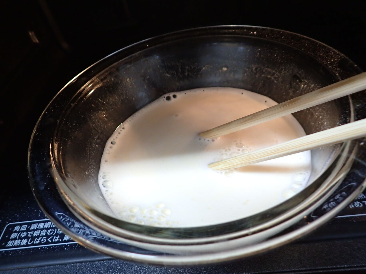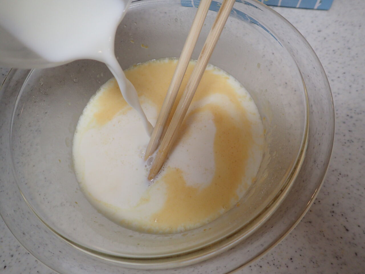 牛乳カップ1(200cc)足して混ぜ混ぜ