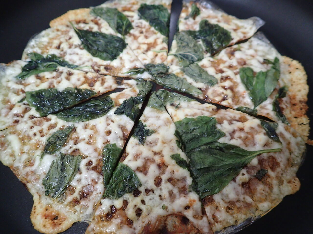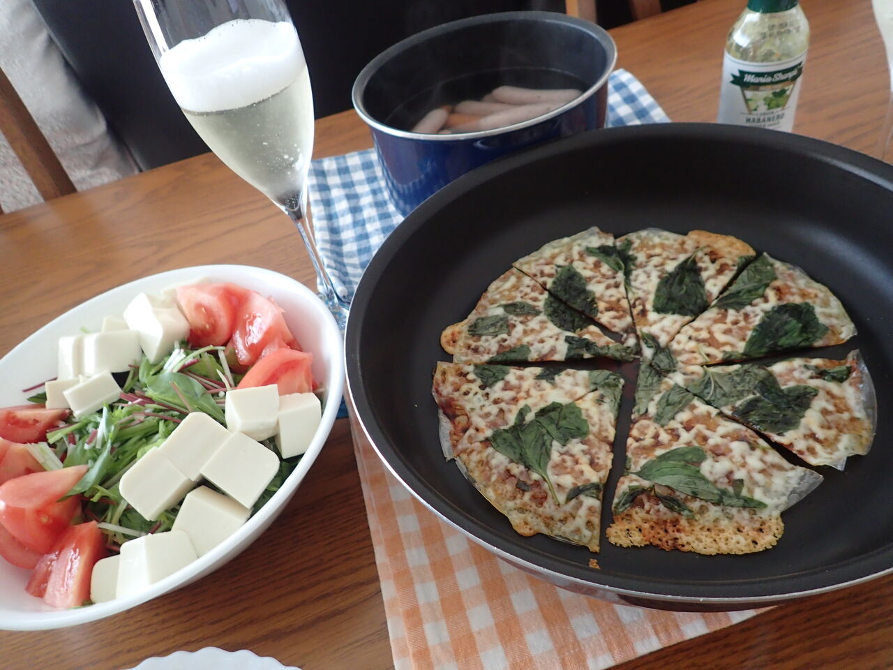 ピザというには軽すぎる、ちょっとしたチーズのおつまみ的な・・・後日、同様にライスペーパー2枚に、チーズだけのっけて焼いてみたらサックサクで![]()