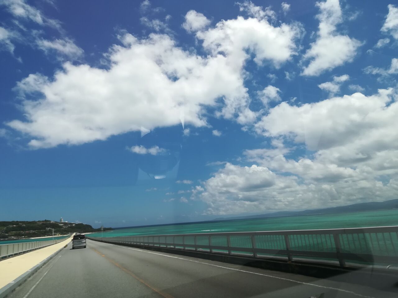 晴れた日の両サイドのコバルトブルーの海の真ん中をす~と通る一本道、何とも言えない爽快感ですよね![]()