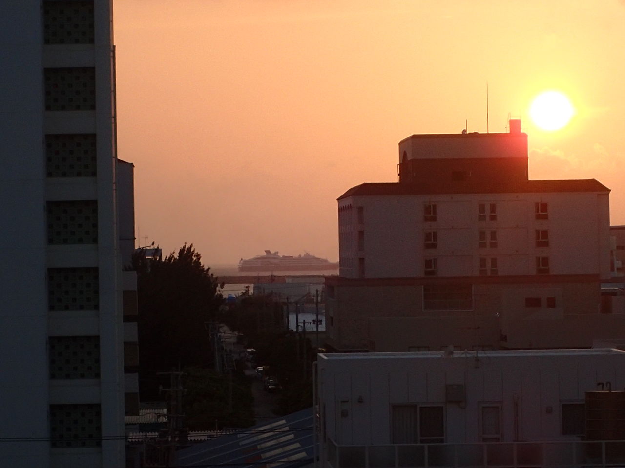 今日は西側の海に浮かぶ大きな船をご覧下さい。