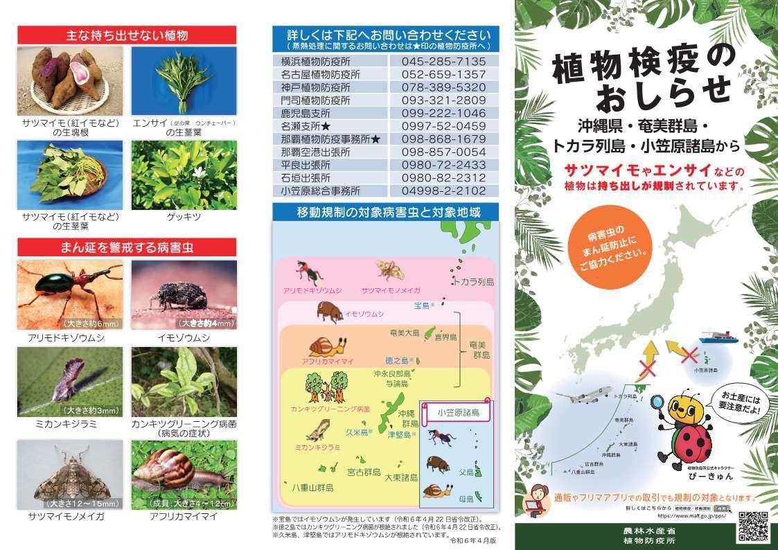 そしてこれらの害虫は芋類に寄生する可能性があるため、紅芋以外にサツマイモ、空心菜(ヨウサイ・ウンチェーバー)、アサガオ、グンバイヒルガオ、モミジバヒルガオ、オオバハマアサガオ等の生茎葉及び地下部も同じく持ち出しが出来ません![]()