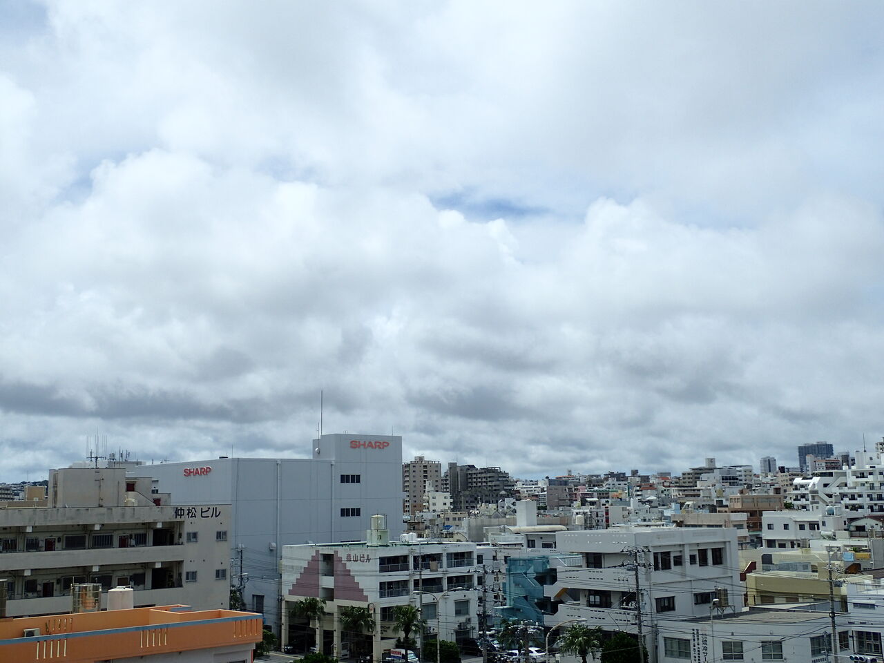 午後雨予報の那覇、東側には雲がべったりと![]()