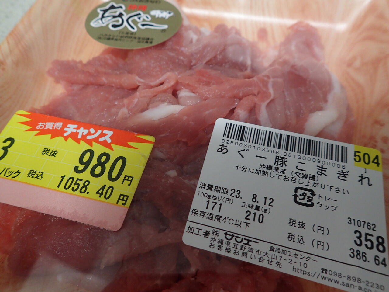 お手頃価格の豚の小間切れや切り落とし肉で