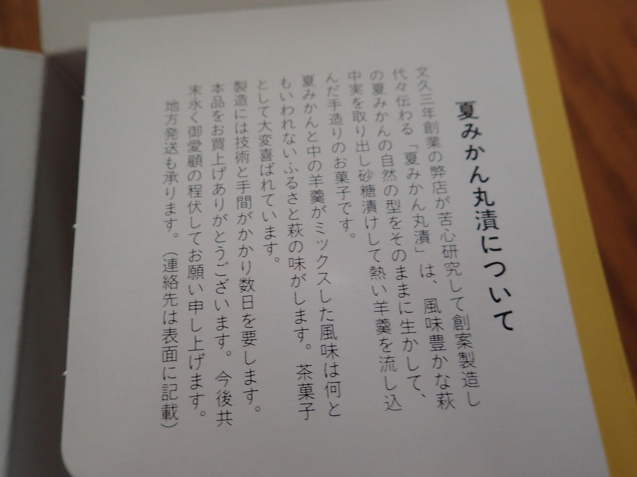 です。萩(山口県)のお土産でいただいたコチラ