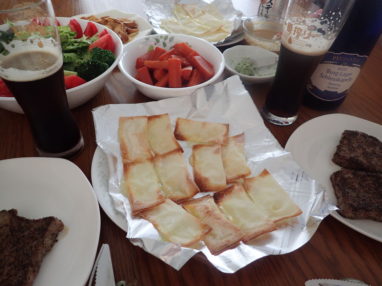 がチーズを包んでくれている間に食事の準備