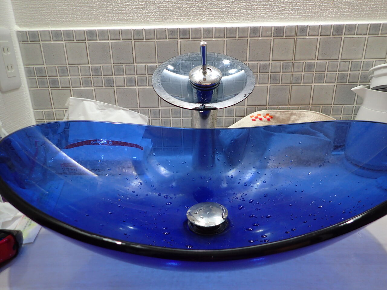 少し変わった洗面台はレバーで操作。