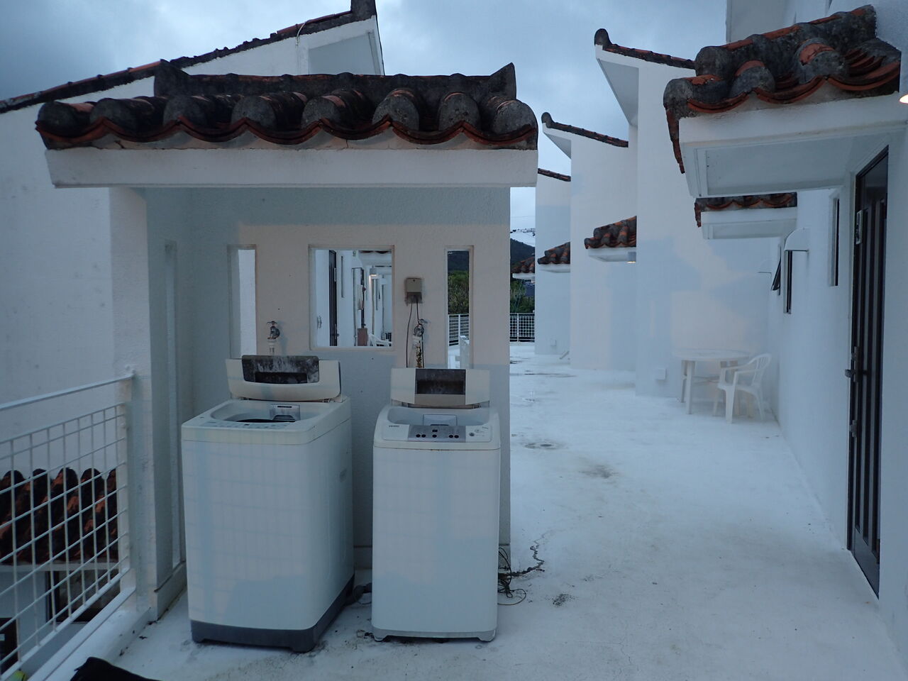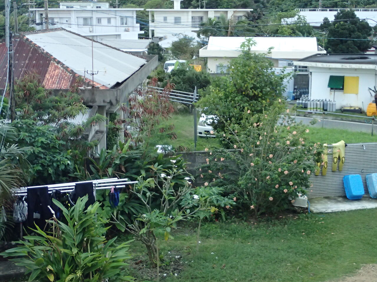 さらに1階の広場にダイビング器材を干す物干し場があるのですが、安定感が超悪く、スーツを干そうとして台が倒れて断念。 台を押えないと倒れるし、一番苦労しました!!