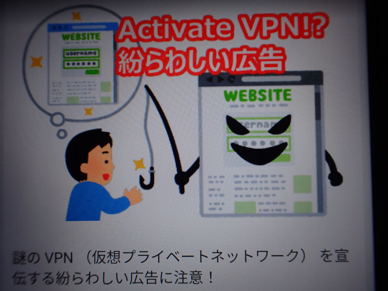 こういうスタートボタンがあり、ここから入っていくとActivate VPNという英語のサイトへ誘導され名前・住所・クレジットカード番号などの個人情報を入力するようになっているらしい![]()